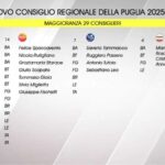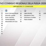 Ci sono anche gli uscenti già assessori nella giunta Emiliano Ciliento, Piemontese e Pentassuglia mentre conferma per Loredana Capone già Presidente del Consiglio regionale. Sette invece i rappresentanti della lista civica diretta del presidente Antonio Decaro che sfiora il 13% con un componente per provincia e due nel foggiano. Altra lista civica, Per la Puglia, saranno 4 i rappresentanti in consiglio regionale mentre stesso numero sarà per il Movimento 5 Stelle tra cui ci sono gli uscenti Casili e Barone, quest’ultima già nella giunta di Emiliano per un periodo. Grande delusione per Avanti Popolari (altra lista civica a sostegno di Decaro) e AVS che non esprimeranno nessun consigliere pur avendo superato di poco la soglia di sbarramento del 4%. In particolare non ci sarà Nichi Vendola che nonostante le quasi 10mila preferenze raccolte nei tre diversi collegi dove era candidato non tornerà in consiglio regionale.